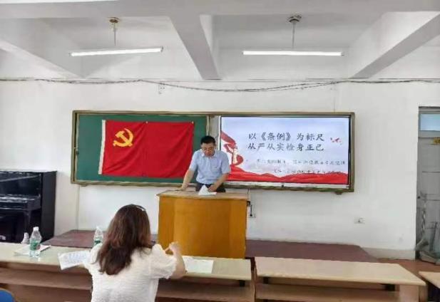 2024年6月14日,在教科院406教室,召开“以《条例》为戒尺,从严从实检身正己”主题党课活动,活动由李刚书记领学,活动过程中教师保持高度的专注,认真聆听案例警示,部分教师积极发言,结合《条例》的规定,不断思考着检身正己的要求。