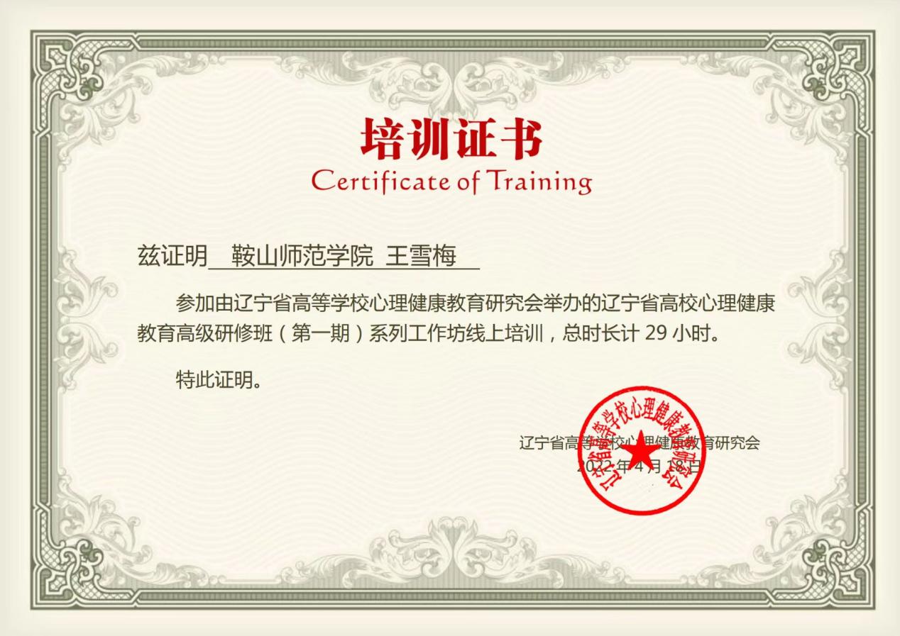 1 | 辽宁省高校心理健康教育高级研修班 | 王雪梅 | k8凯发 | 副教授 | 2022.4.18 |