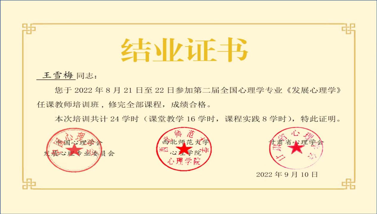 2 | 第二届全国心理学专业发展心理学任课教师培训 | 王雪梅 | k8凯发 | 副教授 | 2022.8.21—8.22 |