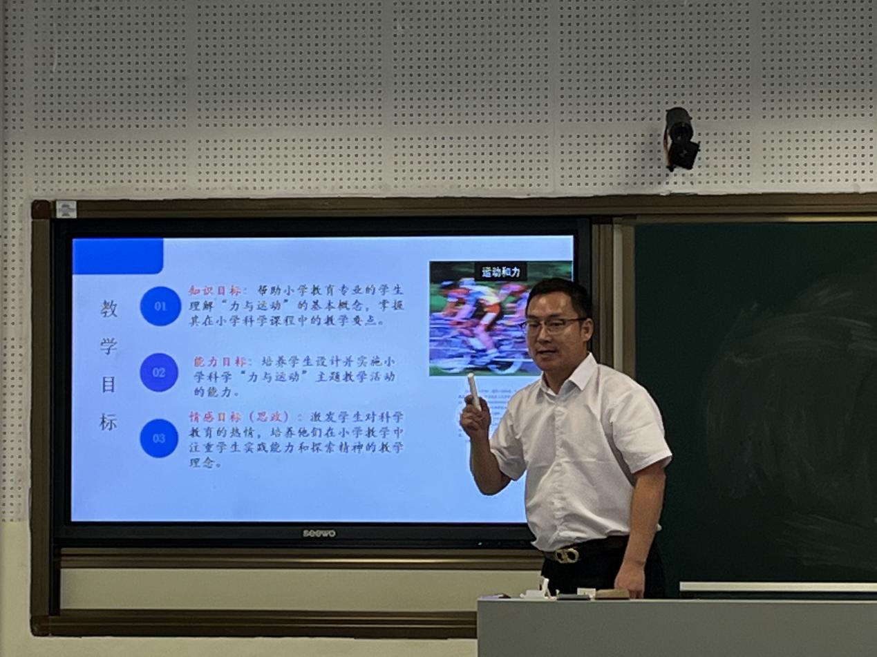 随后,新入职教师陈则旭老师、杨秋月老师进行《小学科学教育概论》《大学生心理健康教育课程的15分钟教学示范课展示。授课结束后,全体教师参与了集体教研活动,并由专家进行了细致的点评与指导。