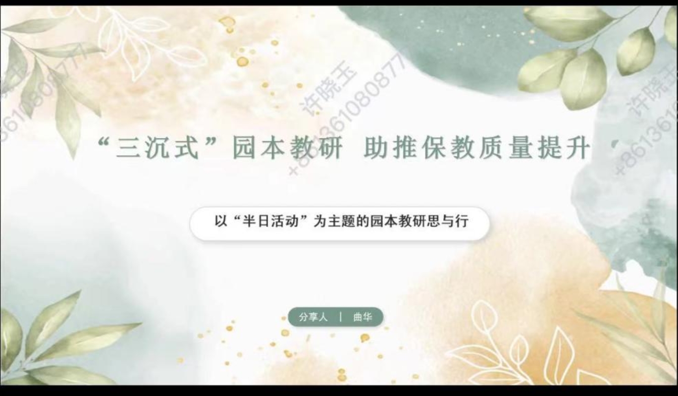 本次活动特别邀请鞍山市“十三五”、“十四五”教育科研骨干教师鞍山市白鸽幼儿园保教负责人曲华老师2024年辽宁省“半日活动评优”一等奖获得者、鞍山市白鸽幼儿园大班教研组长多玲玲老师两位专家分别就《“三沉式”园本教研,助推保教质量提升》及《聚焦半日活动,实践评优要点》两个主题进行分享。