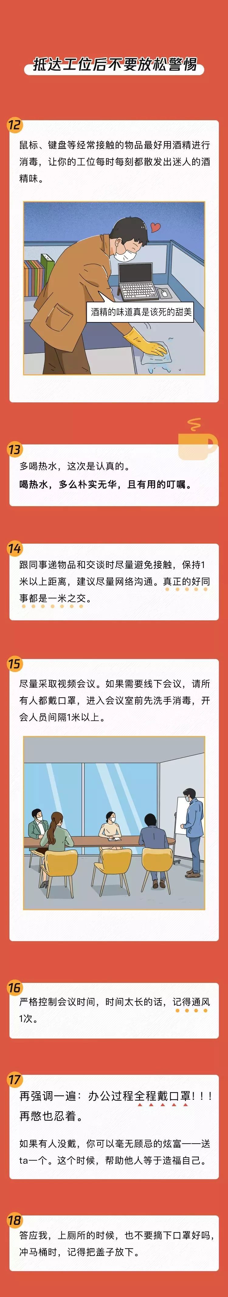 去办公室上班,首先记住四个防疫准则——「勤洗手」「戴口罩」「勤通风」「保持距离」。
