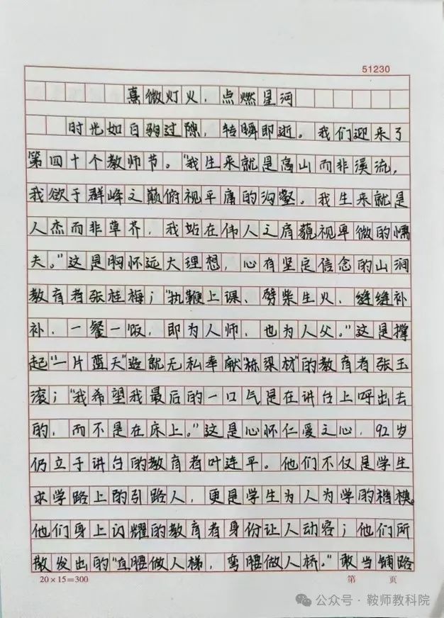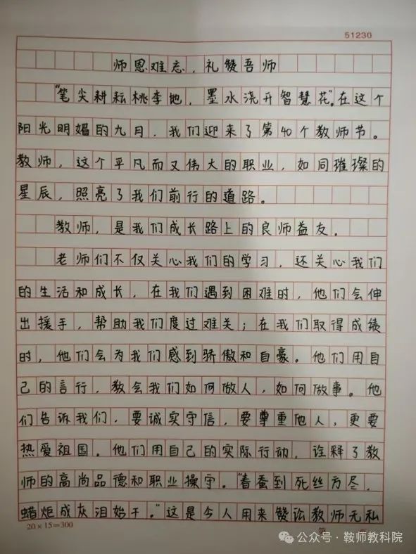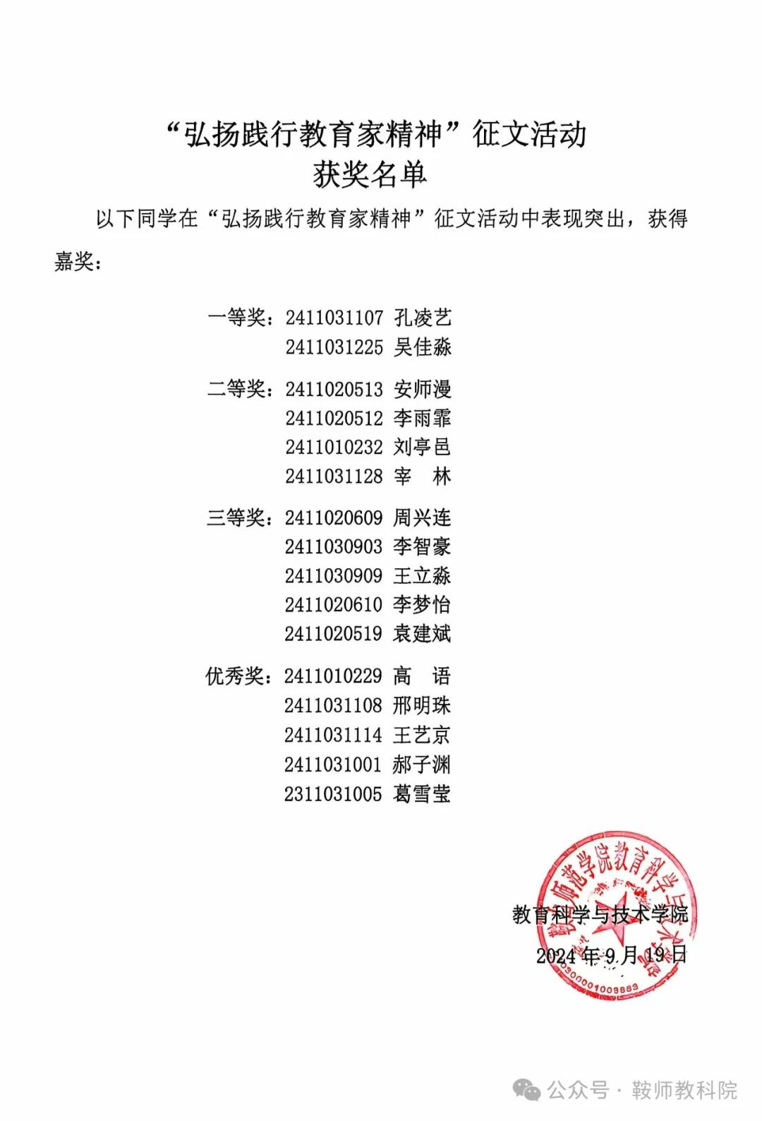 璀璨星河,知识传承;教书育人,师道永存。为弘扬尊师重教的传统美德,促进师生情感交流,增进师生间的理解和尊重,增强学生的文学创作能力,提升学生的文化素养,教科院特举办“弘扬践行教育家精神”主题征文活动。