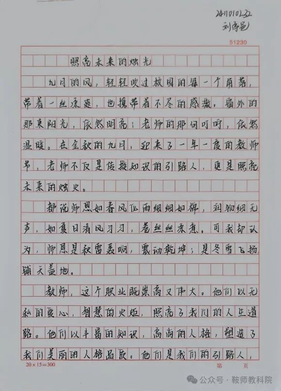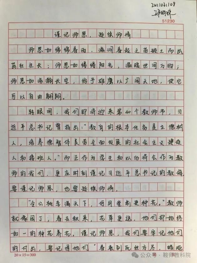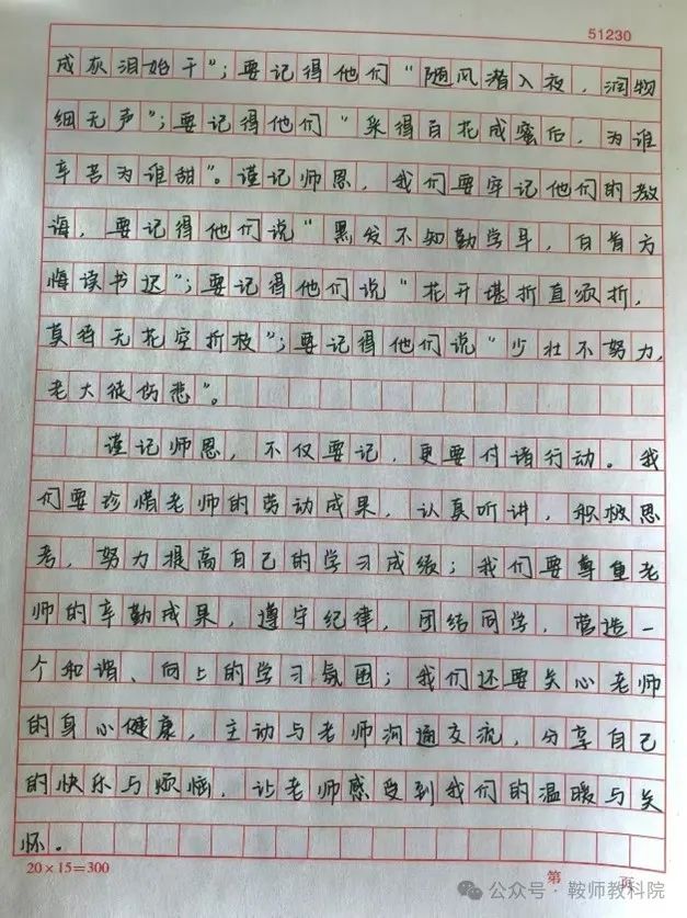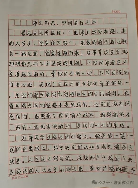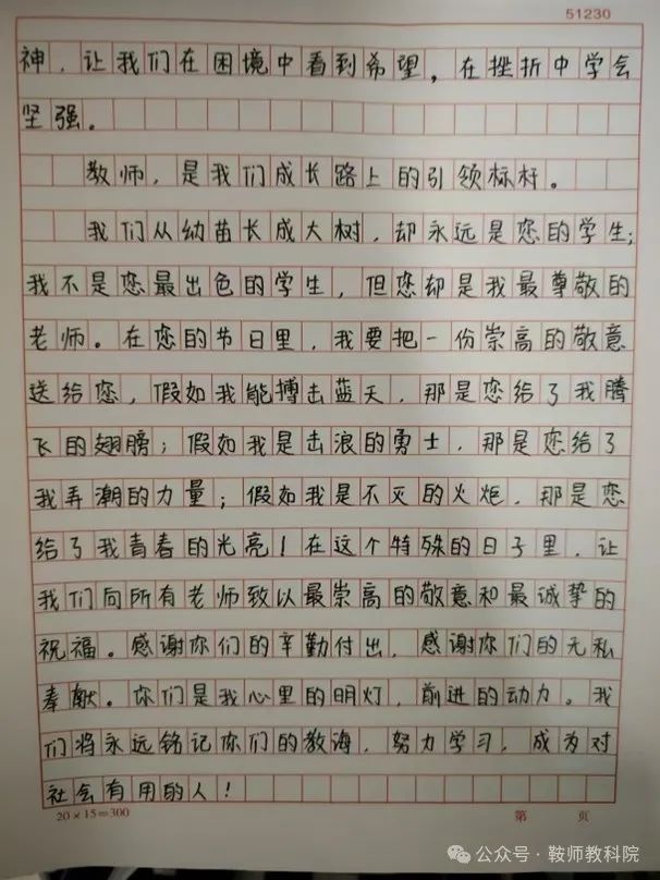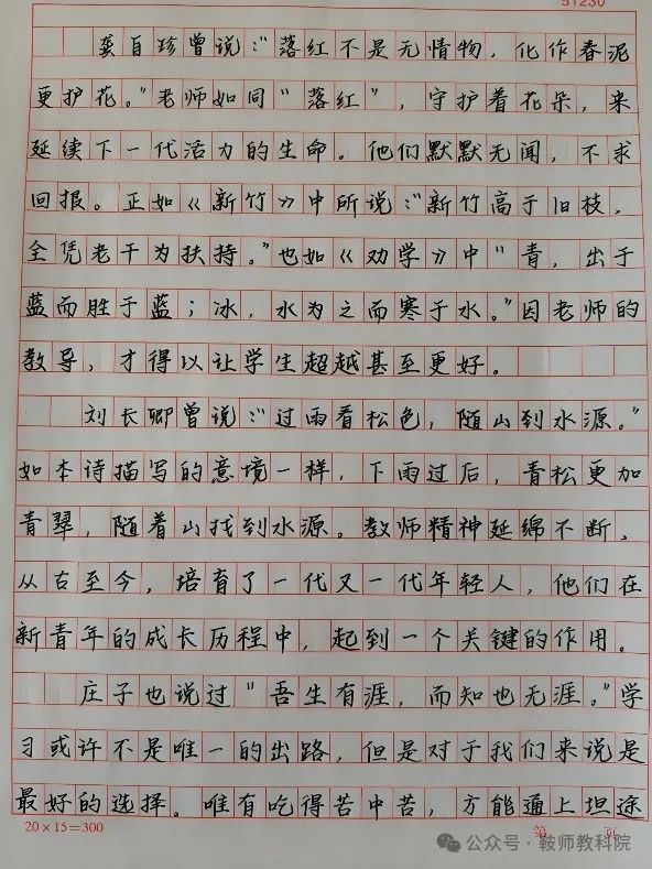 此次征文活动进一步营造了学院尊师重教的良好氛围,为教科院的学子们提供了向老师表达感激之情的良好平台,激发了学生们对教师职业的尊重与赞美。愿每位同学都能铭记师恩,励志前行,以梦为马,不负韶华,共创辉煌!
