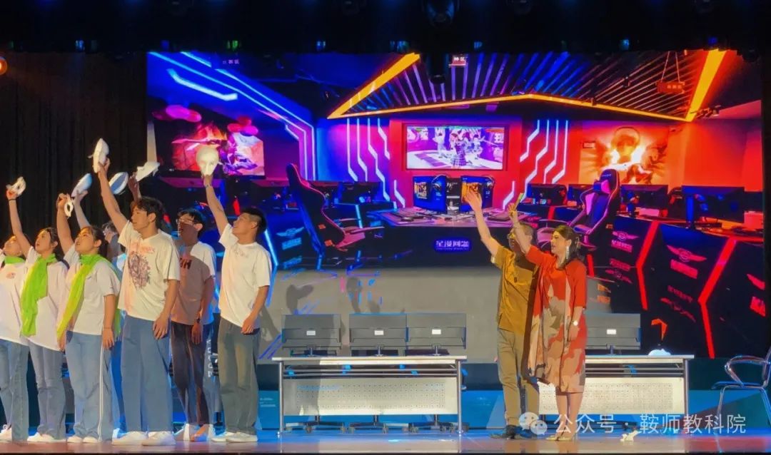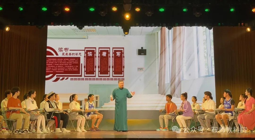 本次《一路花开》大型原创舞台思政剧,教科院师生积极参与。副书记翟晶与副院长金美琳两人共同担任副导演,并且客串剧中角色。同时,学前教育专业的孙文馨、王麓雯、杨谦赫等多名学生均有出色的表现,特别是2309班的杨谦赫同学饰演梁上这一重要角色,充分展现了角色勤奋艰苦、热爱生活的精神,彰显了当代大学生的美好品质。在其他演职人员方面,教科院二十余名学生作为舞蹈演员、剧务组工作人员参与到演出中,认真负责完成工作,显示出了教科院学子出类拔萃的专业能力。