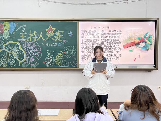 本次比赛由自我介绍、专业主持、特色主持、即兴主持和能力主持五个环节组成,评委进行现场打分。在专业主持环节,选手们聚焦传统文化,以传统节日、传统服饰、传统礼仪等关键词为主题讲述中华传统文化,彰显了新时代青年学子对中华传统文化的喜爱以及坚定的文化自信。在即兴主持环节选手们根据随机抽取的主题,紧扣中华优秀传统文化,在有限的时间内进行了精彩的主持表演,激起大家对中华优秀传统文化的共鸣。经过本次预选赛的选拔,韩眷爱 、马名扬、崔倩涵将代表学院参加校园主持人大赛。
