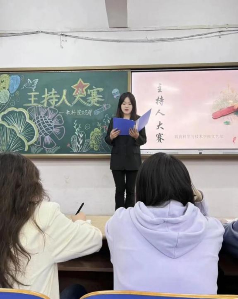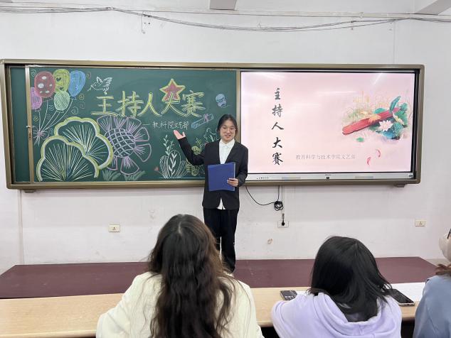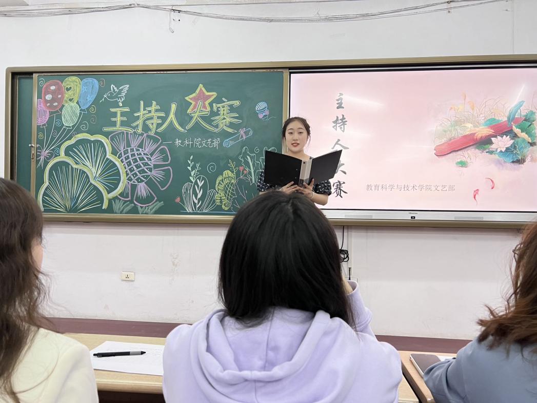 话筒挥斥方遒,热爱绽放光彩。为深入贯彻党的二十大精神,奏响时代主旋律,弘扬中华优秀传统文化,营造青春洋溢、积极向上的校园文化氛围,教育科学与技术学院于4月18日举行了“弘扬传统文化,我心向美而行”校园主持人大赛预选赛,22级部分学生参加了此次比赛。