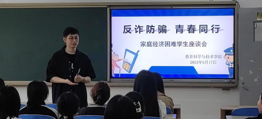 为深入了解我院家庭经济困难学生的学习、生活情况,切实提升资助育人工作实效,增强师生之间的沟通交流,进一步提高我院学子反诈意识,保护我院学子财产安全,教科院组织召开“心系学生,温暖同行”、“反诈防骗,青春同行”主题家庭经济困难学生座谈会。辅导员张岩、丛湘明老师出席本次会议。