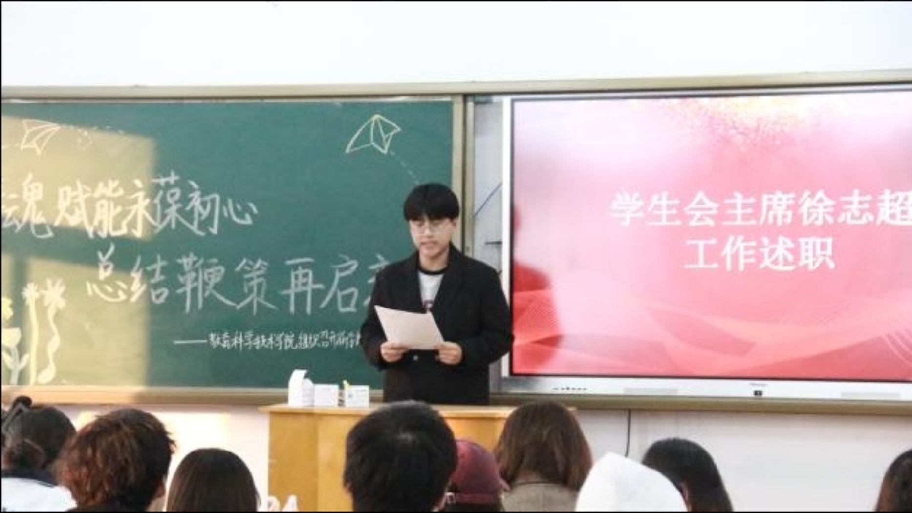 会议伊始,学生会主席徐志超对上学期学生会工作情况进行总结,指出学生干部要“律人先律己”,提出四项工作目标。