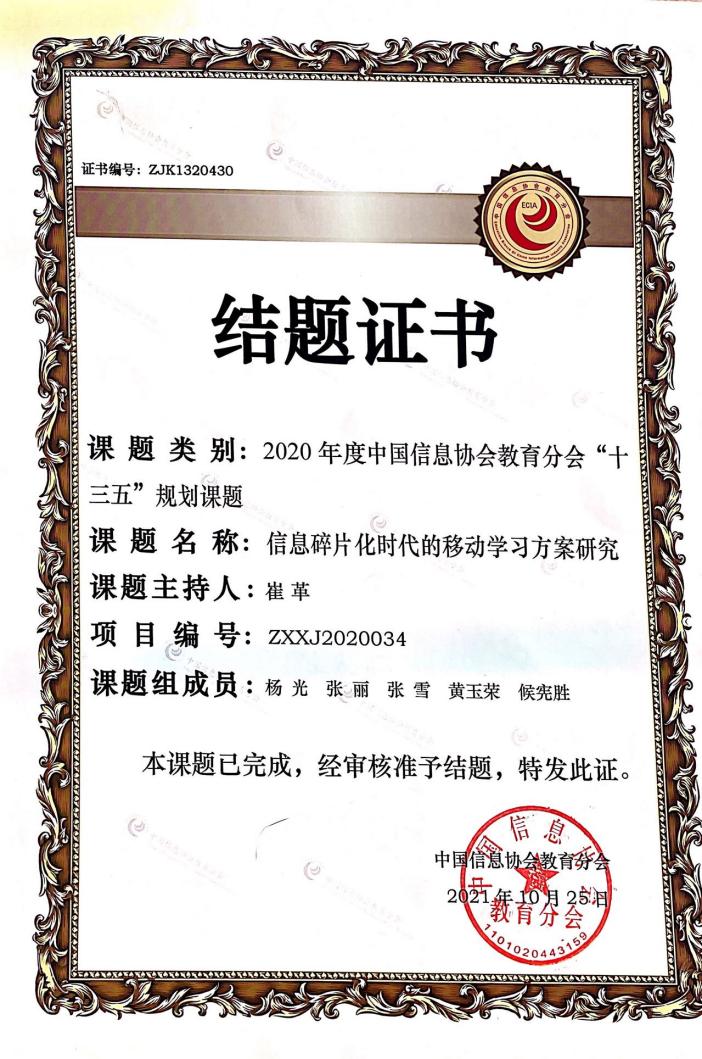 2.20212020年度中国信息协会教育分会“十三五”规划课题通过结题