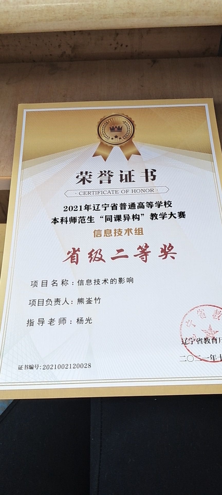 5.2021年指导学生于辽宁省普通高等学校本科师范生“同课异构”教学大赛荣获省级二等奖