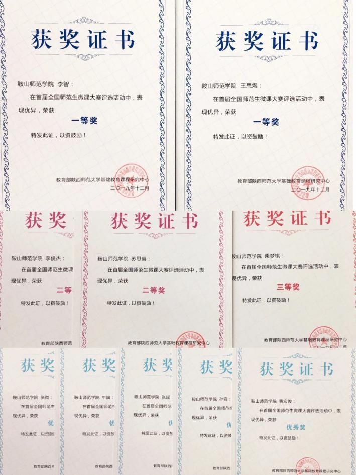 4.2019年指导学生于首届全国师范生微课大赛评选活动荣获一等奖二等奖和优秀奖