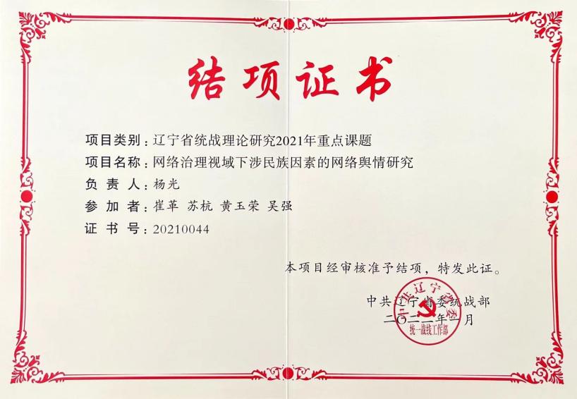 1.2022年辽宁省统战理论研究2021年重点课题通过结项。