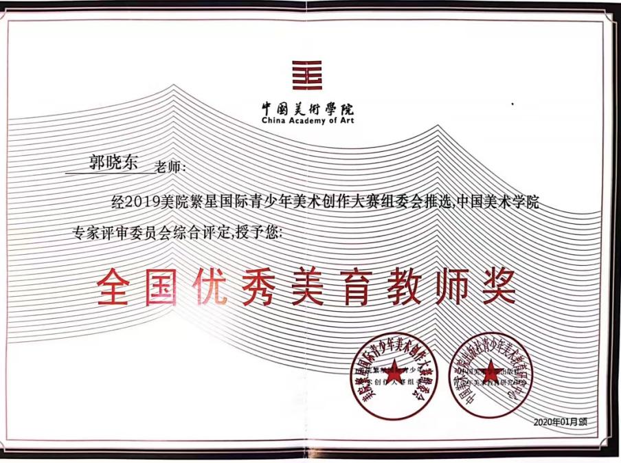 1.2019美院繁星国际青少年美术创作大赛组委会推选以及专家评选委员会综合评定,授予全国优秀美育教师奖。
