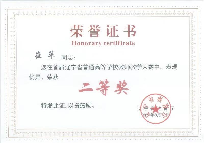 8.在2021年辽宁省普通高等学校教师教学大赛中荣获二等奖。