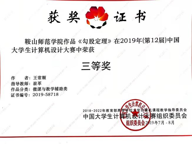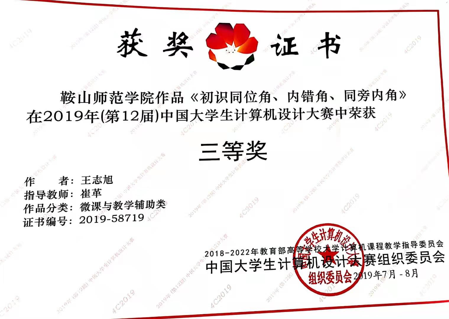 3.在2019年辽宁省第二十二届教育教学信息化大赛高等组微课荣获一等奖。