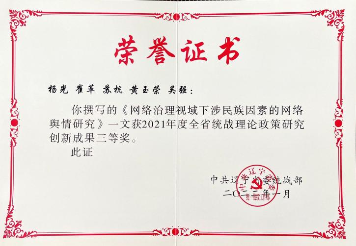 9.在2022全省统战理论政策研究创新成果荣获三等奖。