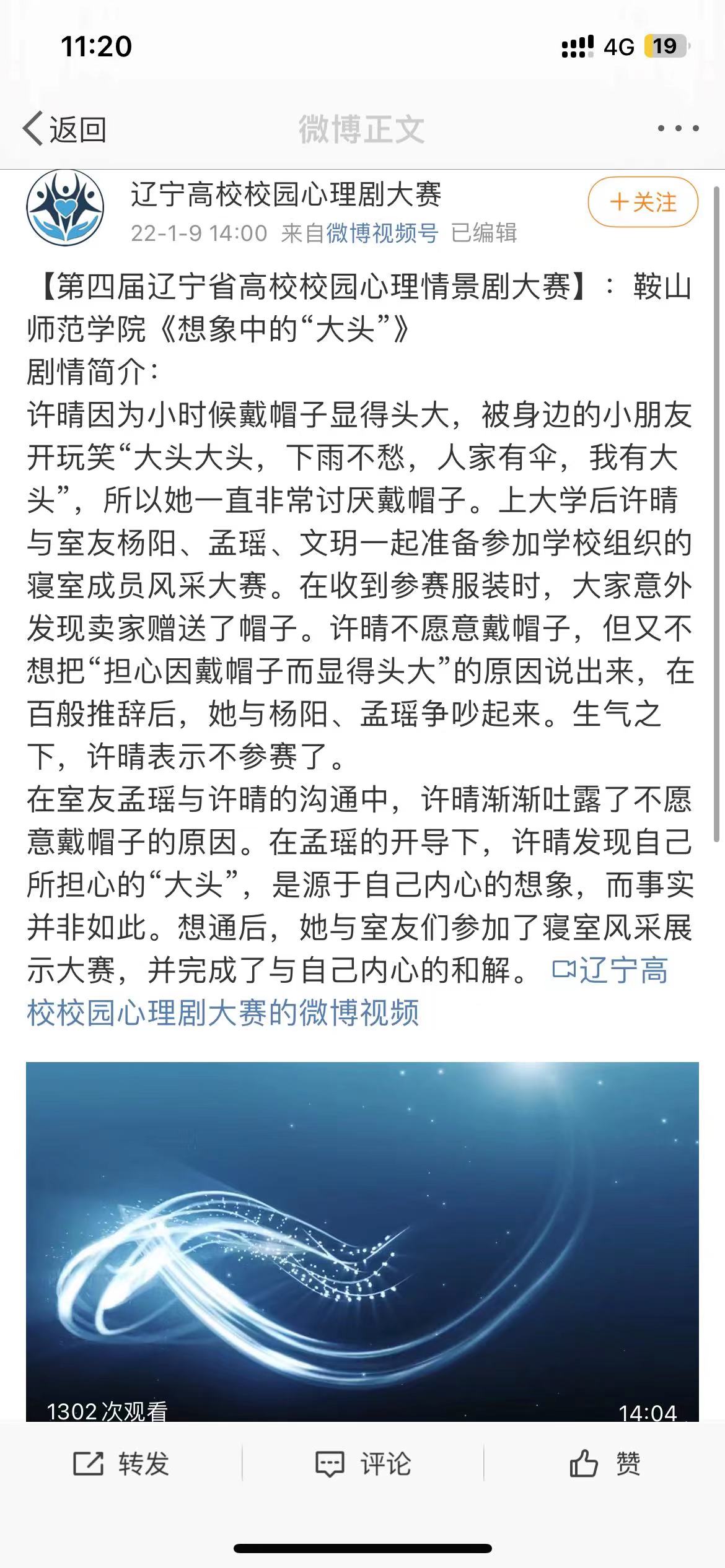 2021年6月,教育科学与技术学院应用心理学专业教师陈奇参与指导,应用心理学专业2019级孙畑畑、黄楚婷,2020级黄锦兰同学参与创作的学生作品《想象中的“大头”》在第四届辽宁省高校校园心理情景剧大赛中荣获二等奖,并于2022年1月作为第四届辽宁省高校校园心理情景剧大赛二等奖作品在微博视频号辽宁省高校心理情景剧大赛展演。